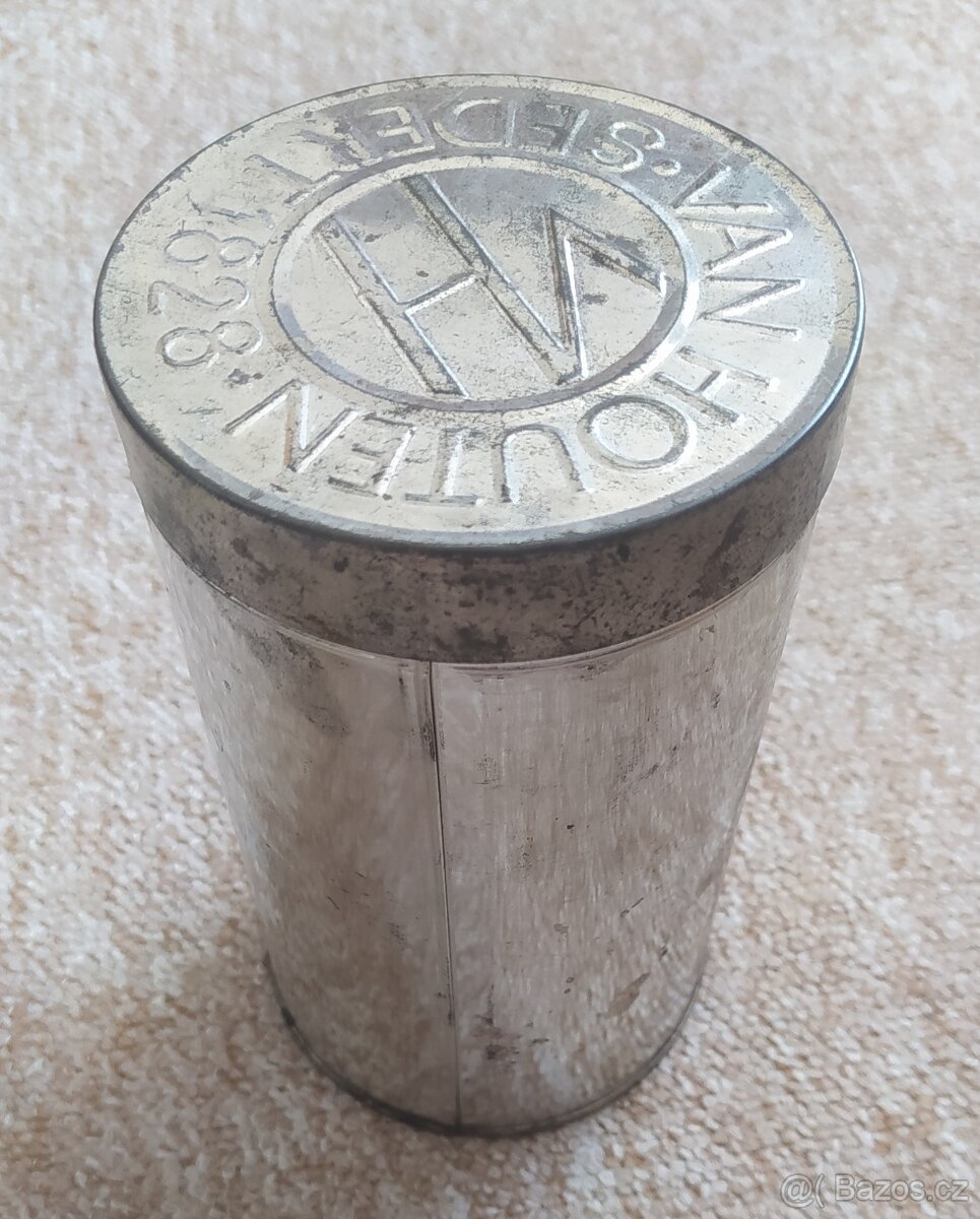 Nabízím starožitnou plechovou dózu na kakao Van Houten 1828. Velice zachovalý stav viz. foto. Výška 16 cm, průměr 9,5 cm. Platí do smazání, na SMS nereaguji. Posílám po platbě na účet.
