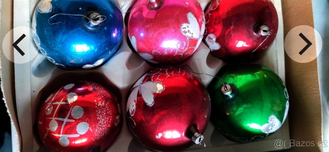 Prodám šest retro ozdob koulí na vánoční stromek v dobrém stavu s původní krabicí.