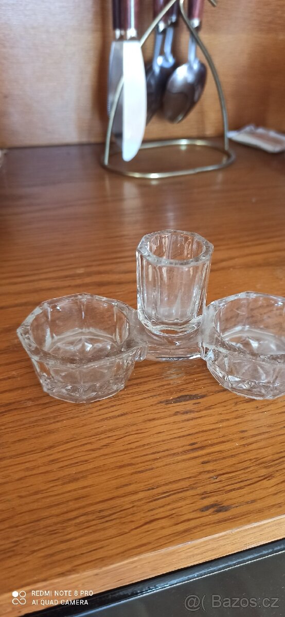 Skleněné dózy, nádoby, dekorace - [1.3. 2026]Tři skleněné dózy, dvě mají víčka, ve tvaru trojúhelníku. Výška 32,5cm, 25cm, 16,5cm. Strana trojúhelníku 9cm. Na potraviny nebo jako dekorace. Cena za vše. Osobní převzetí nebo pošlu.