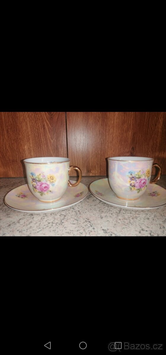 Nabízím přátelskou soupravu, 2 ks hrníček s podšálkem,se zlatavým zbarvením pouze vystavené, nepoužívané, v původním stavu. Cena za sadu 400,- Kč.