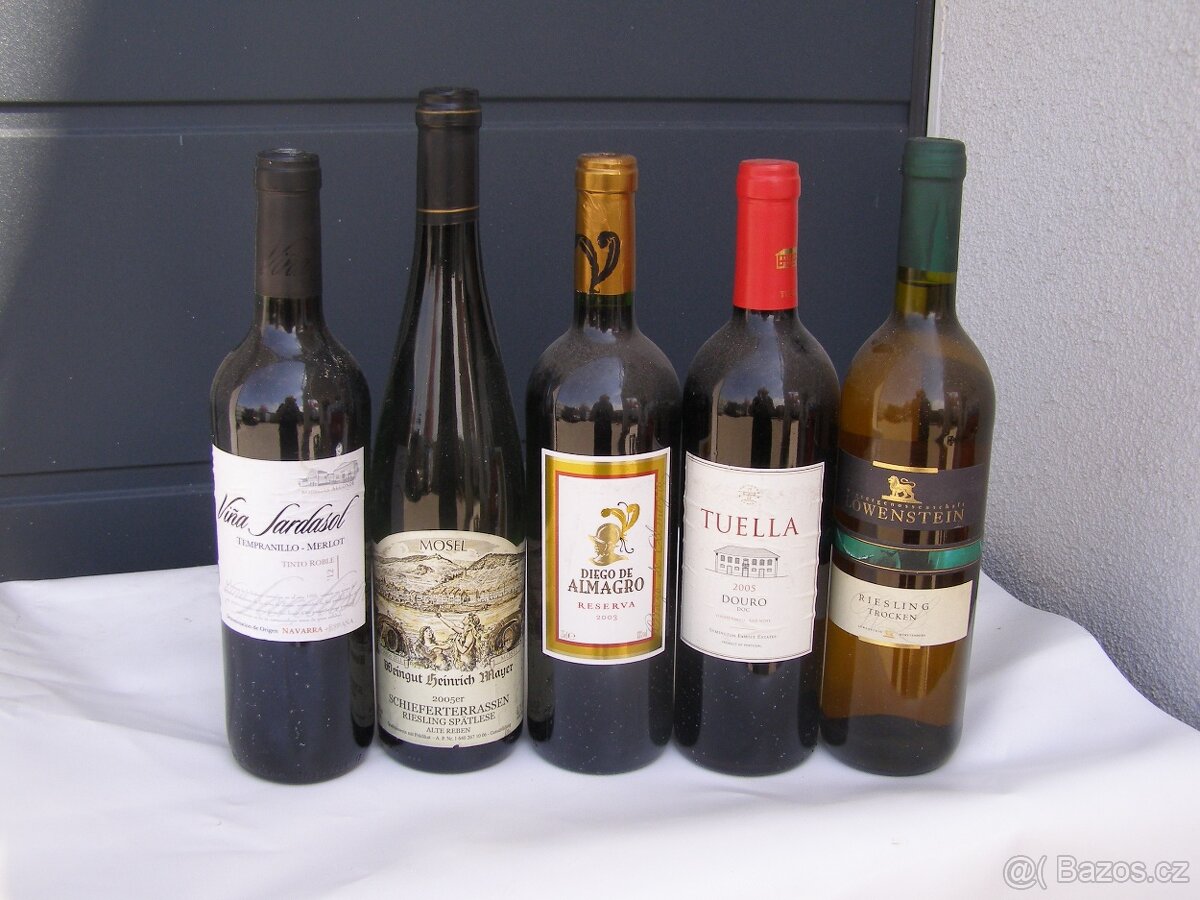 Sada 5 vín cca 20 let staré, originál uzavřené. Ochutnal jsem, některé na pití excelentní, ale nemohu dát záruku. Cena sady je včetně odeslání 1.000,00, nebo osobní odběr Úvaly