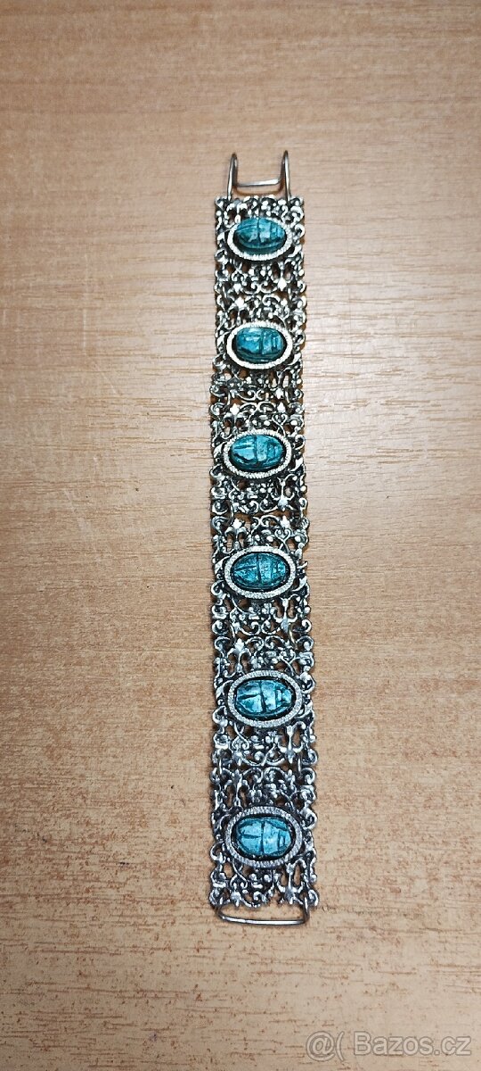 Scarabeus náramek, obecný kov!!!,délka ccc 20 cm, používaný,jedno oko není původní.Nejspíš před rokem 1989 Stav dle foto.Cena bez dopravy,Zásilkovny.Nebo osobní vyzvednutí po dohodě v prodejně na metru C Ládví Po-pá 13 -19h víkendy zavřeno,kde je k dispozici.