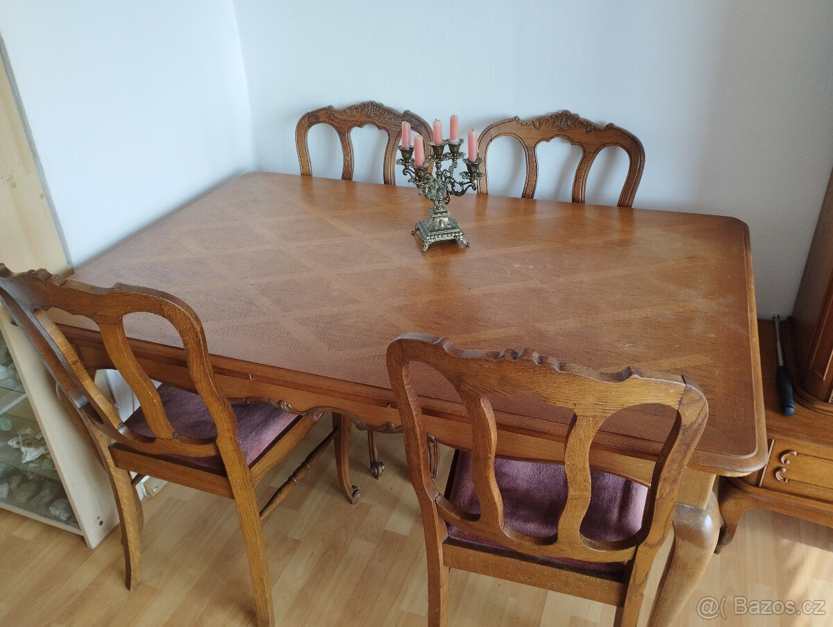 Stůl , židle - [30.4. 2026]Prodám starožitný stůl a židle 6 ks.