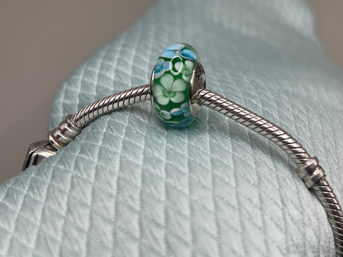 zelený skleněný korálek se stříbrným středem, označení S925, nový, vhodný na Pandora náramek