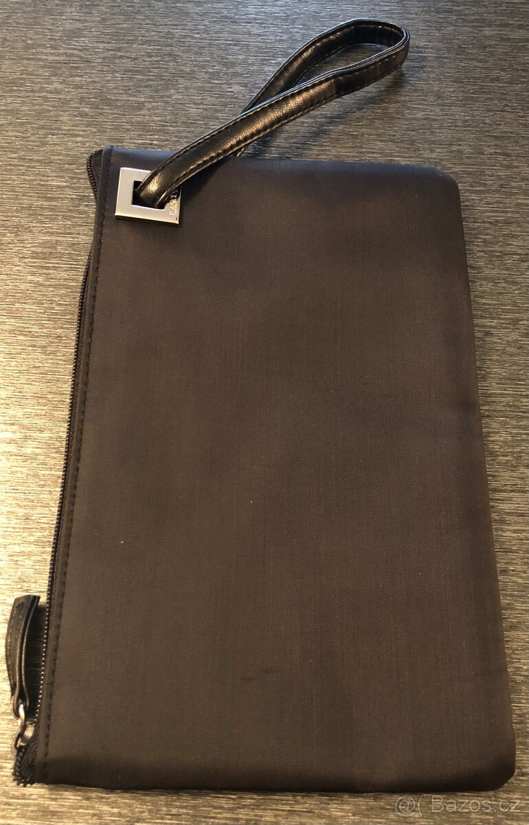 LANCOME - černá taštička. Lze použít jako kosmetická nebo jako malé psaníčko, protože má ucho na držení v ruce. Nová. Posílám dárkově zabaleno v orig. Lancome papíru se stužkou.