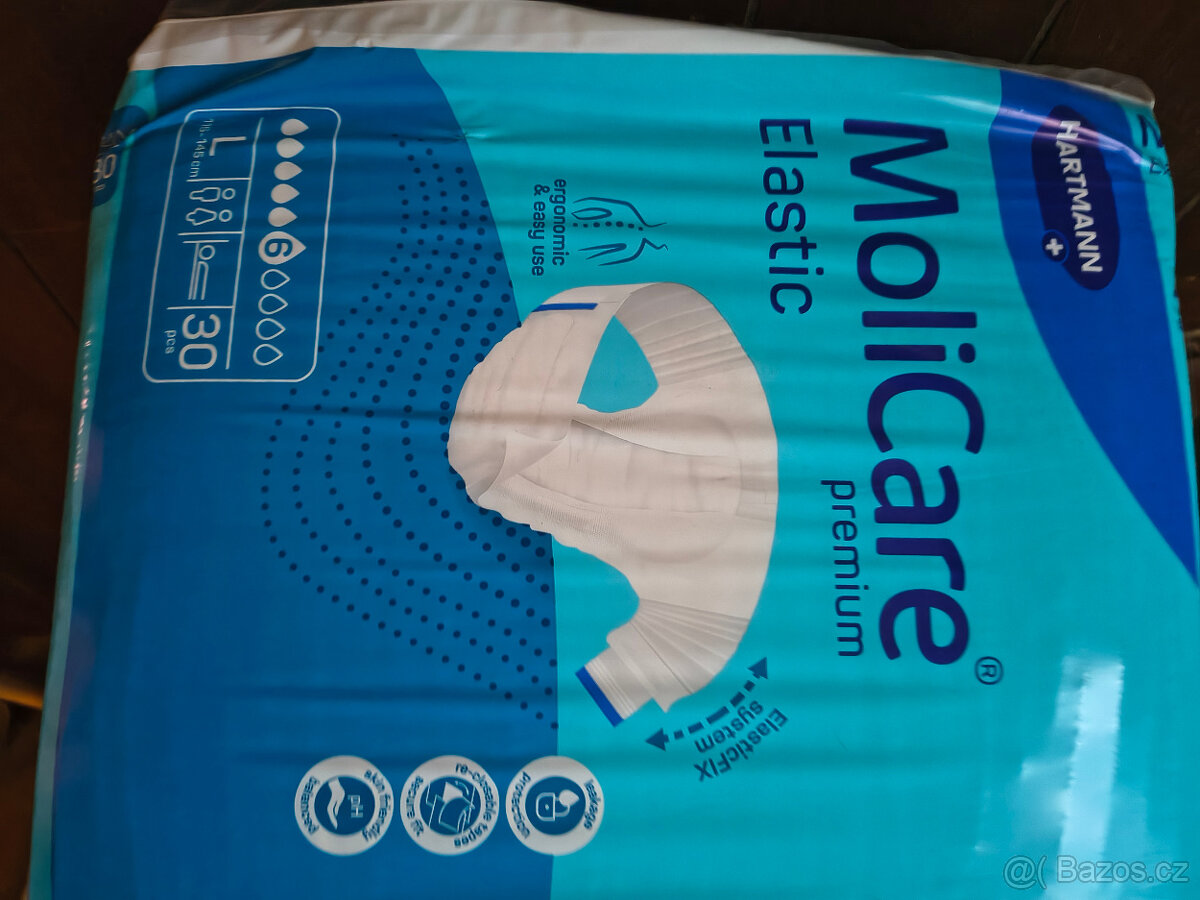 30 ks MoliCare Premium Elastic M, 6 kapek, pro dospělé - [8.4. 2026]Inkontinenční pleny / kalhotky pro dospělé, MoliCare Premium Elastic M, 6 kapek, 30 ks v jednom balení. Zapínací, vhodné i pro ležící pacienty.
