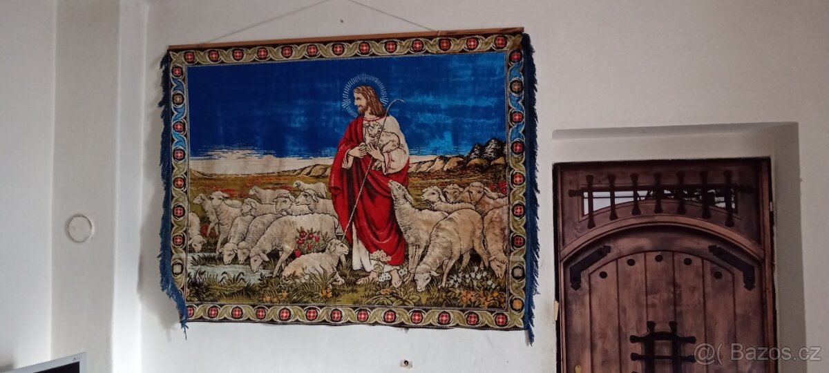 Koberec byl celou dobu pověšený na zdi. Velikost bez třásní 160 / 120 cm.