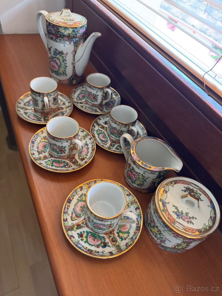 Konvice, konvička, cukřenka, 5x hrnek s podšálkem. Sada nebyla nikdy použita.