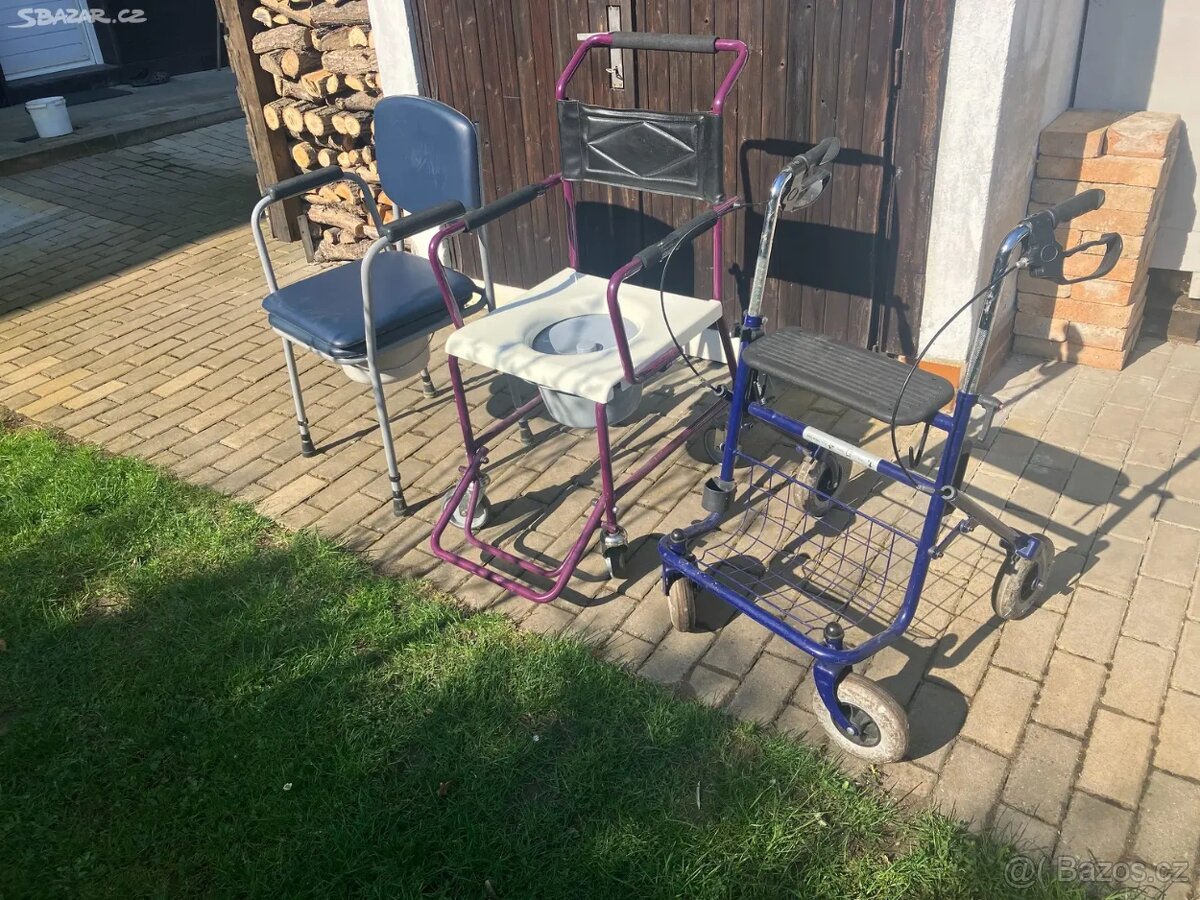 Prodám chodítko skládací,židle toaletní, židle toaletní na kolečkách Nymburk
