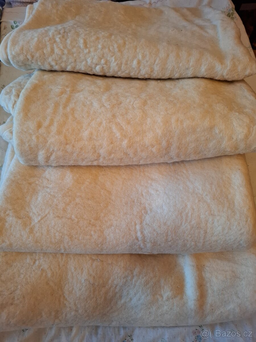 4 starsi použité vlněné deky, i jednotlivě, rozměr 90x180 cm