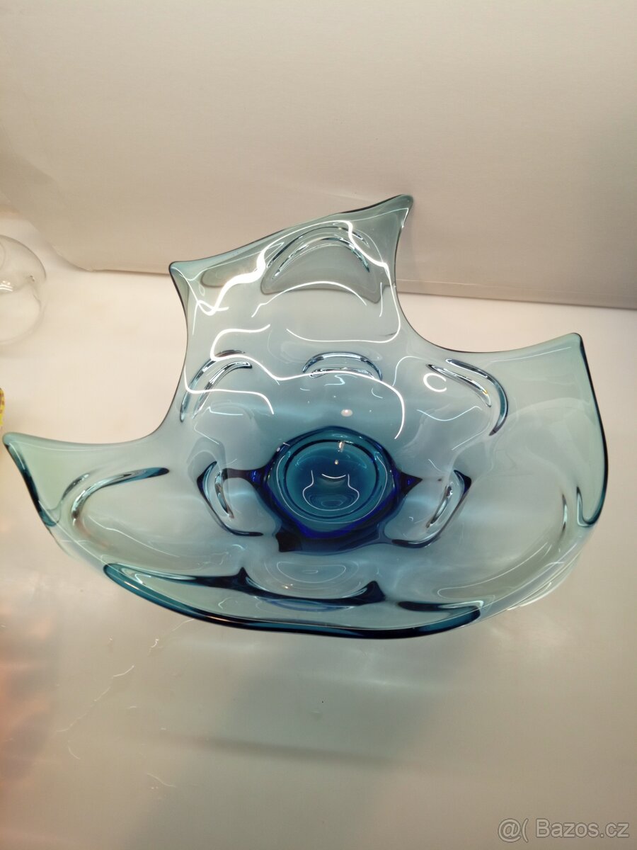Mísa - hutní sklo, bez vady, výška 14 cm, délka 37 cm.