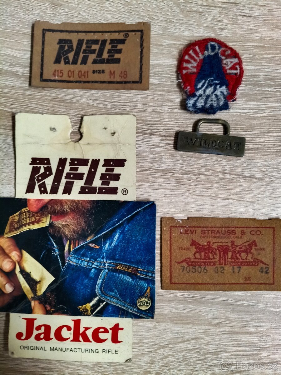 Štítky a Loga od starých riflí Levi's, Wildcat a Super Rifle.