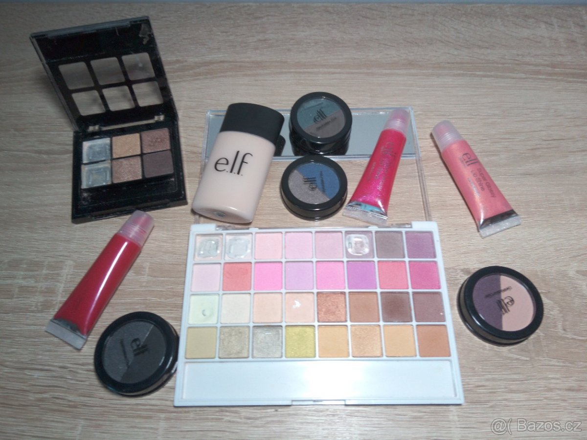2) Elf velká paletka očních stínů warm, obal dost poškrábaný, některé stíny vypoužívané - 50Kč