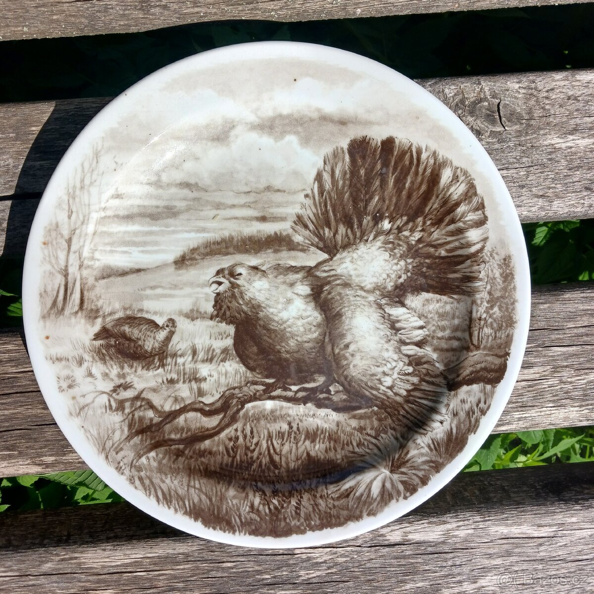Prodám tři talíře. Tetřev hlušec se slepicí. Srnec se srnou a dravcem.