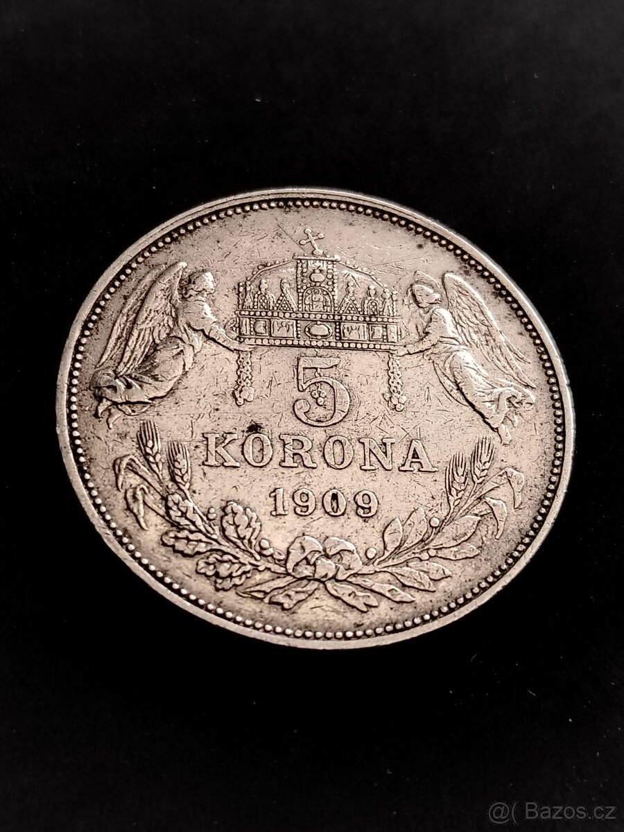Stříbrná 5 koruna roku 1909. KB
