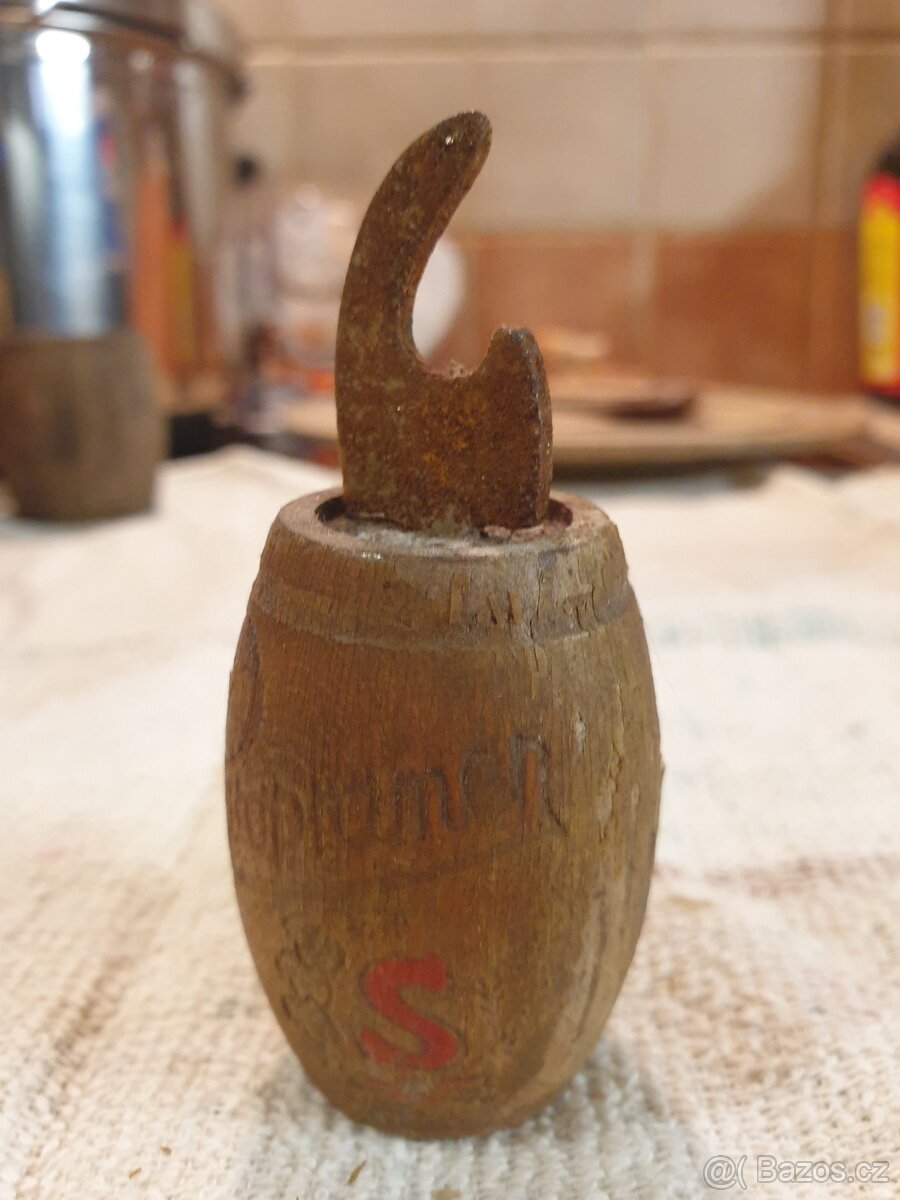 Prodám dřevěné věci do kuchyně k renovaci. Talířek má málo viditelný reliéf srdíčka a květin, je naprasklý, dvě kořenky (sůl a kmín)-jedno bez víčka a také naprasklé, stojánek na vajíčko, lžička, otvírák Staropramen. Prodám jako celek, zajímavé nabídce.