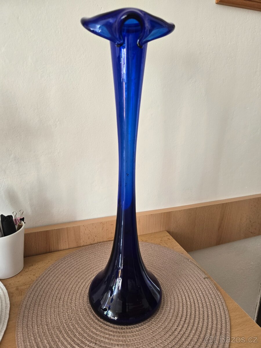 Modrá váza vysoká 37 cm. Vhodna na kytky i pro sběratele Bez poškození.