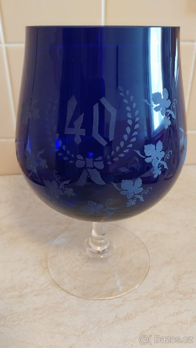 Prodám modrou narozeninovou číši výška 25cm,cena 100 Kč, modrou vázu výška 27 cm, na zadní stěně dna malý otřep,viz foto, cena 100 Kč. Malovaný džbán, výška 25 cm. Cena 100 Kč. Ozdobné láhve: basa, 4 kusy, objem 0.75l; 160 Kč za kus, láhev basa 0,75l s uzávěrem za 180 Kč, láhev s kohoutkem 1,75l; 180 Kč, torzo ženy 0,5l; 160 Kč, srdce 0,75l; 160 Kč, slivovica 0,7l; 200 Kč. Skleněný džbán ze silného skla, objem 4 litry, výška 28cm, nepoškozený, 300 Kč. Skleněný džbán s mysliveckým dekorem, výška 28cm, objem 2 litry, cena 60 Kč. Láhev žárovka 0,2l za 90 Kč. Láhev ve tvaru hroznů 0,75l za 160 Kč.