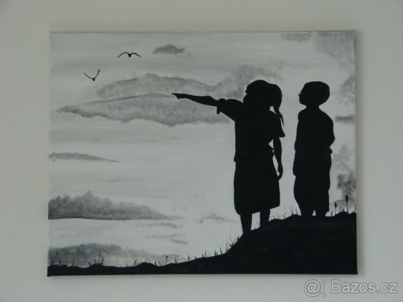 Obraz malován akrylovými barvami na plátno potažené na dřevěném rámu. Rozměr obrazu 40 x 50 cm. Pomalovány i boční strany. Cena 800,- Kč + poštovné.
