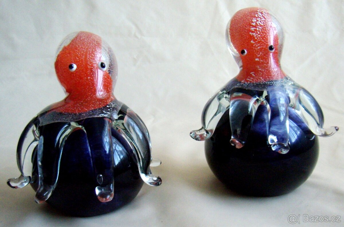 Prodám nová velká skleněná těžítka chobotnice, výška 12,5 cm a 13,5 cm, průměr 11 cm. Originální ruční výroba.
