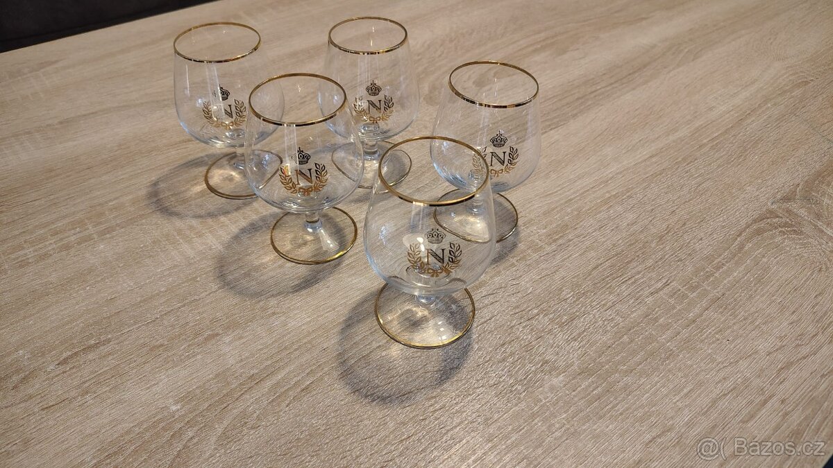 Skleničky " N " sada - [26.4. 2026]Nabízím k prodeji skleněnou sadu 6 skleniček na koňak/ brandy tzv. Napoleonky " N ". Okrajově horní a spodní část mají zlatý dekor. Sada je v perfektní kvalitě. Obrženo v 80 letech..Možnost zaslání i via Zásilkovnu.