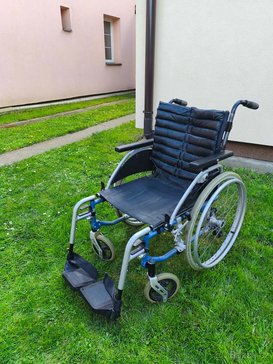 Invalidní vozík - [27.4. 2026]Zánovní mechanický invalidní vozík, používaný nárazově cca rok. Byl koupen jako nový na Unizdrav.cz. Vozík je bez poškození. Váha 16 kg, nosnost 110 kg, skládací, bržděný, brzdy pro obsluhu, vyklápěcí područky, odnímatelné opěrky nohou, opěrný pás p ...