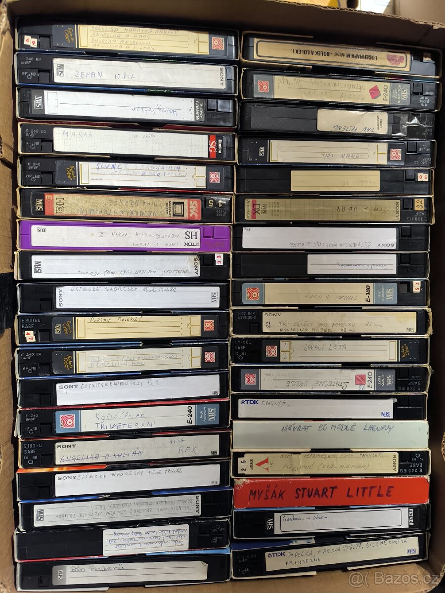 Prodám nahrávané videokazety. Posílám zásilkovou. Bedna za 500 + doprava. Celkem 5 beden po cca 50 kusech