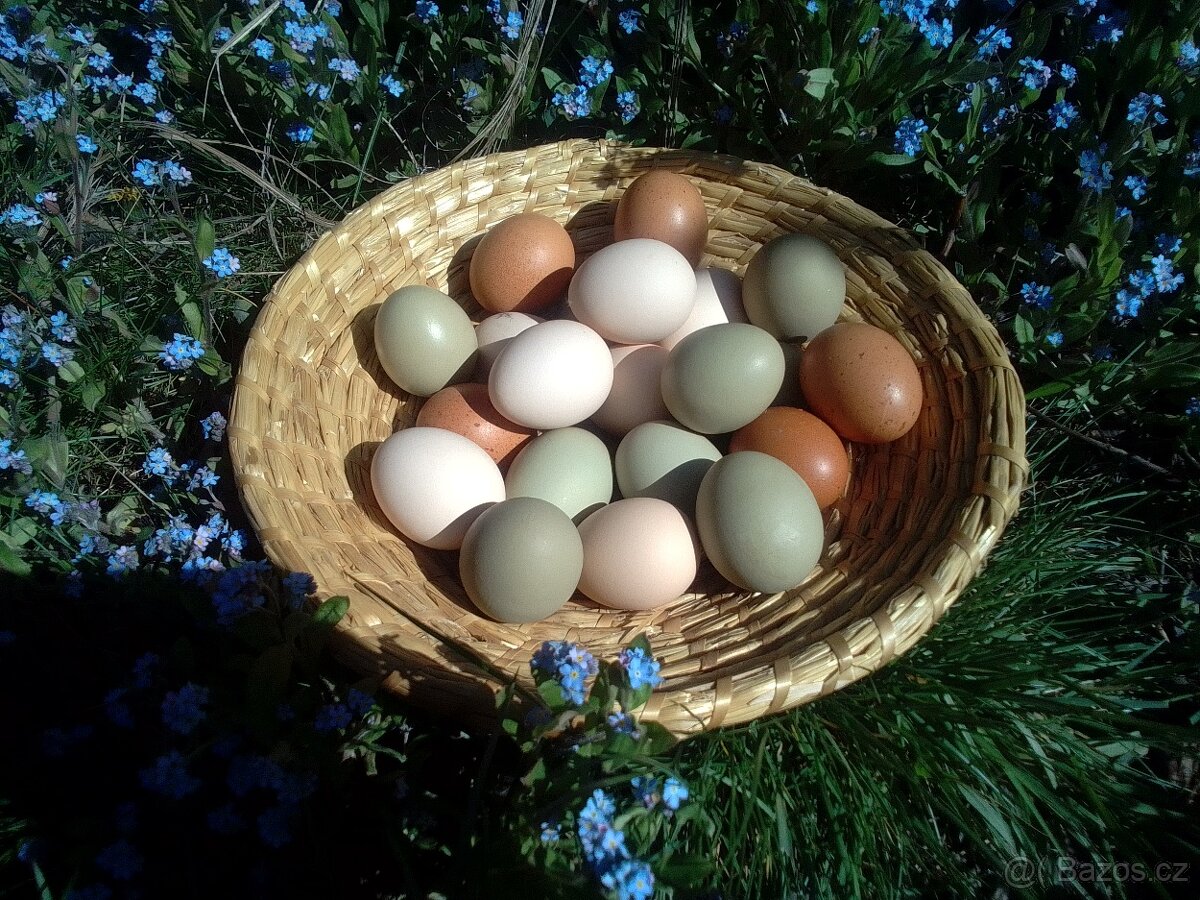 Rádi bychom touto cestou nabídli přebytky domácích vajíček s barevnou skořápkou(olivová, blankytně modrá,levandulová, krémová,chocholaté...).Nejde nám o kvantitu,ale kvalitu.Budeme mít k prodeji jen pár krabiček po 10 kusech vajíček týdně zatím jde spíše o rezervaci a zjištění zájmu.Mame jen menší hejno slepicek,které má k dispozici denně větrany a čistě nastlaný kurník,luční seno,probioticke hobliny,přirozenou stravu, velký životní prostor, sluneční lázeň, slepičí lesík,bobule,bylinky.Slepicky s námi žijí v úzkém kontaktu,dají se pohladit a pochovat.Maji neomezený pohyb, do jejich domečku si večer zacházejí a ráno vycházejí dle své potřeby bez jakýchkoliv omezení. Chovame je s láskou na vajíčka pro svou vlastní spotřebu a zároveň jsme chtěli nabídnout přebytky někomu,kdo si přeje kvalitní vajíčka od slepicek chovaných v přirozených podmínkách,nám tím pomůžete podpořit náš chov a bude tak pro nás udržitelný i do budoucna.Piste prosím do emailu či SMS,Pouze osobní předání.Cena je za krabičku s 10 ks vajíček.Zaroven prosím,kdo by měl doma přebytečné obaly na vajíčka na 10 kusů,či sušené skořápky,budeme za ně rádi.