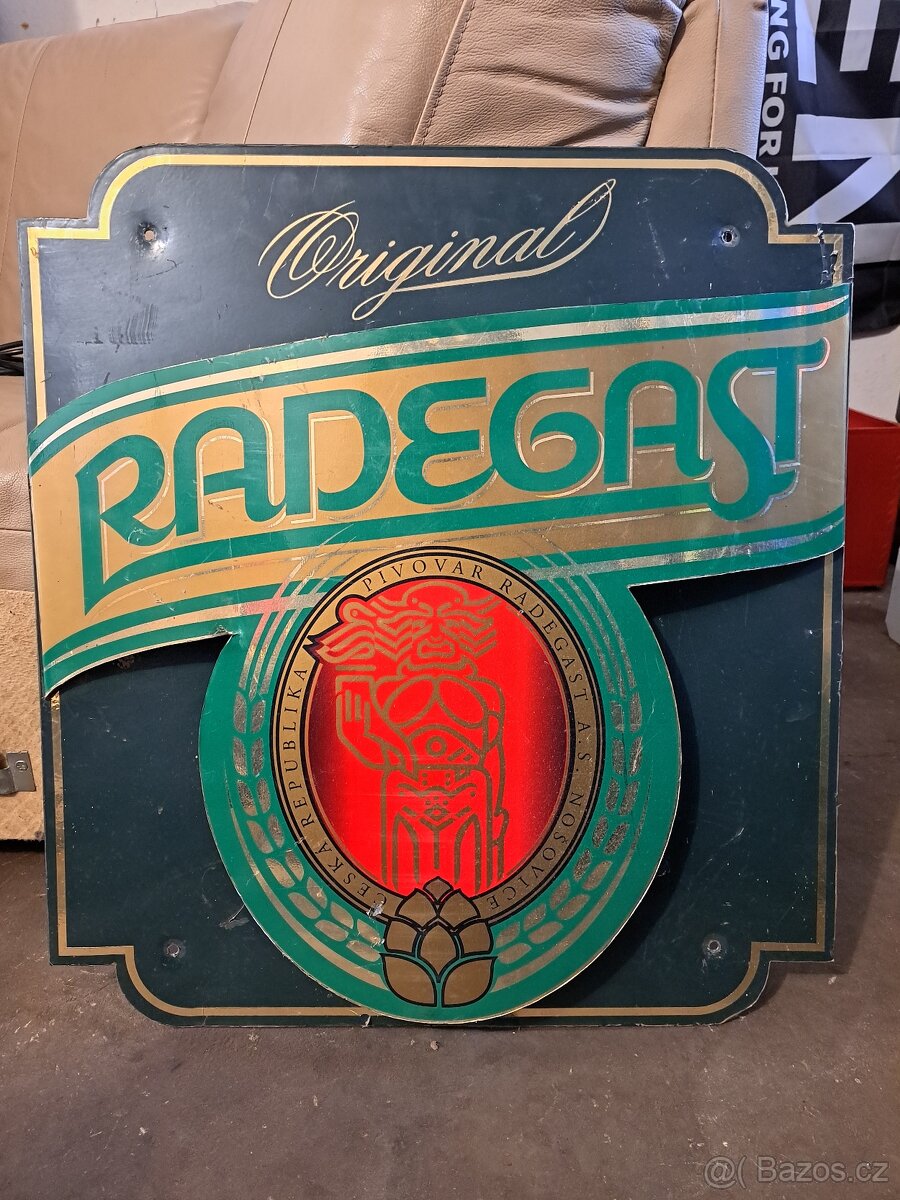Plechová cedule Radegast.Váha 5kg.Rozměry 59x64cm.Použitá.