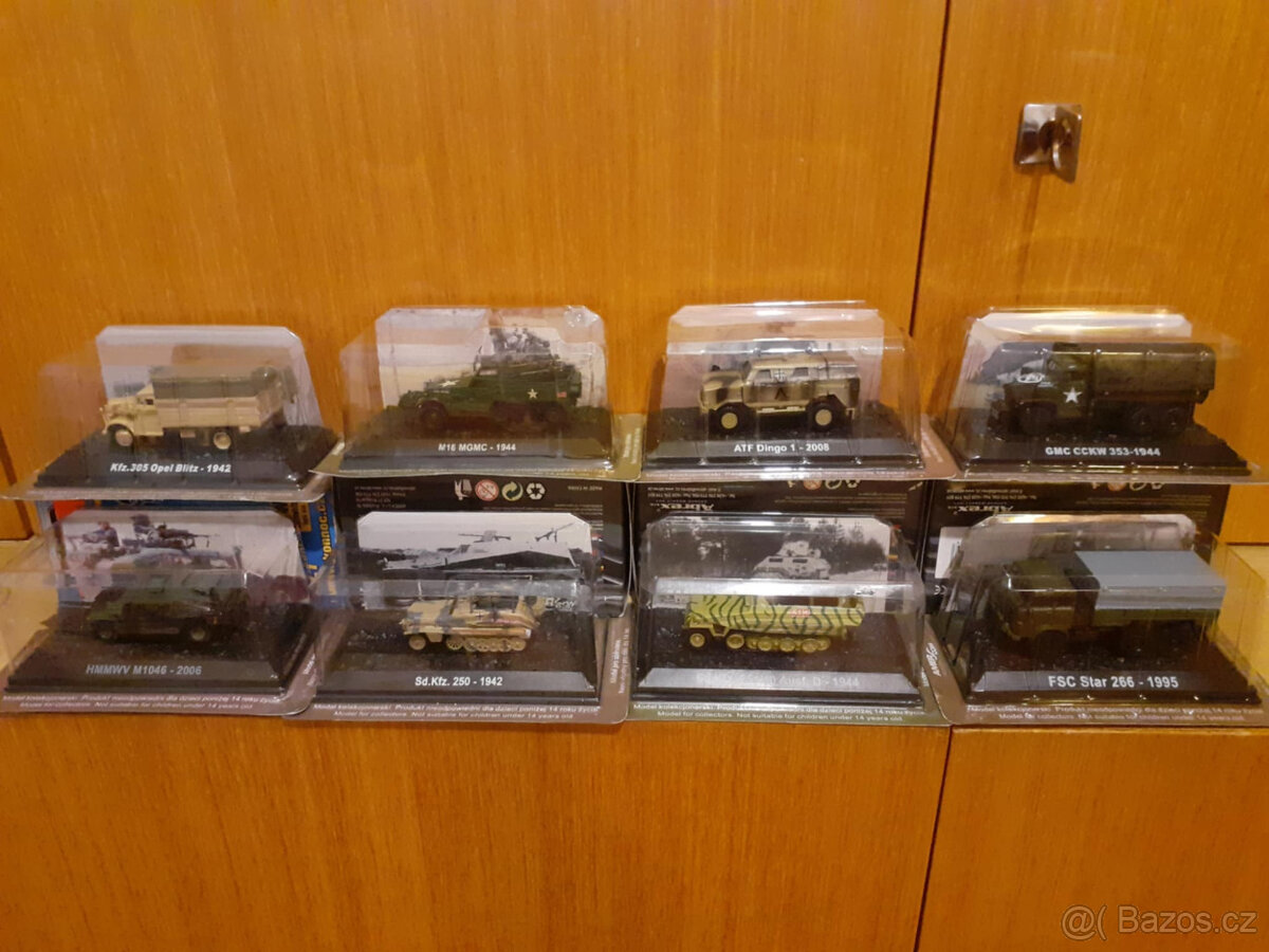 Vozidla a tanky armády různých tipů v měřítku 1:43