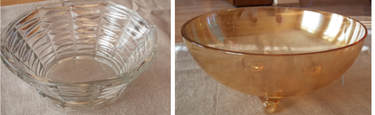 2) masivní skleněná mísa, průměr 21cm, výška 8cm, masivní, dobrý stav. Cenu nabídněte.