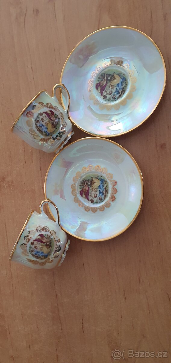 Přátelská,porcelánová souprava,obsahuje 2šálky a 2podšálky,výborný stav,nepoužívané