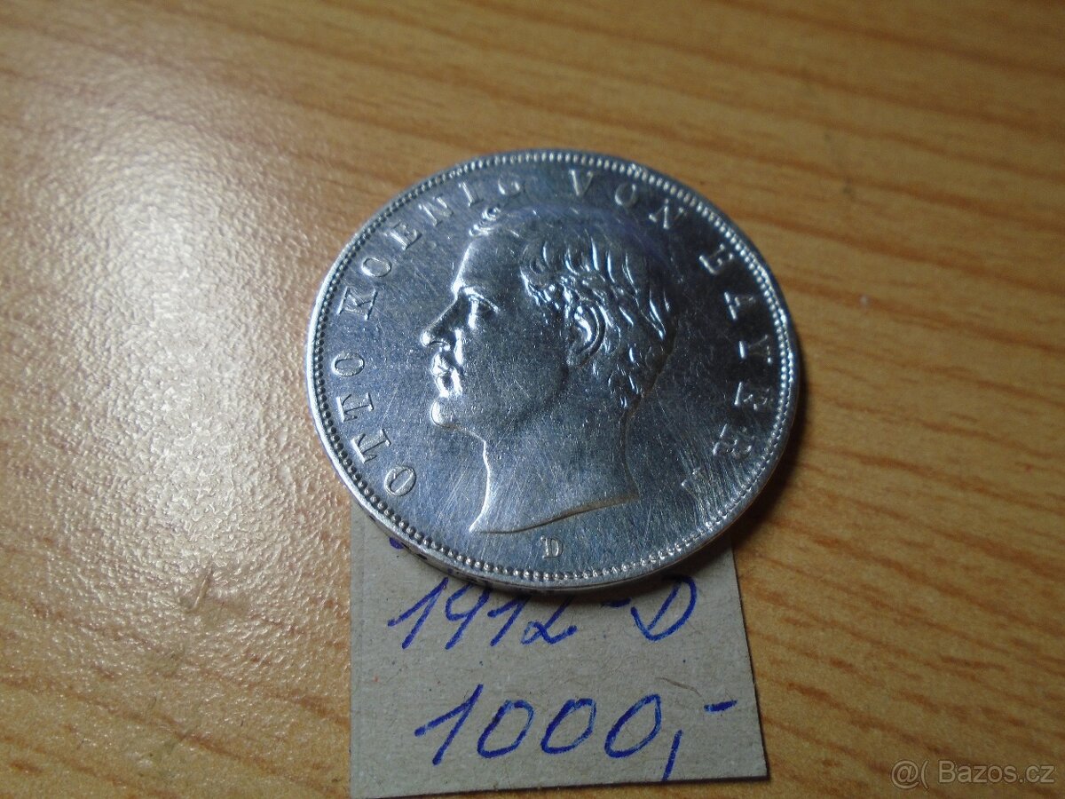 3 MARKA OTTO BAVORSKO 1912 D 1000,-kč