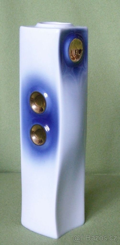Krásná porcelánová váza značená Atelier Pirken-hammer, Made in Czechoslovakia. Jedná se o unikátní atelierovou práci z přelomu padesátých a šedesátých let, tzv. bruselský styl. Označeno v dílně, původní obal. Zdobeno kobaltem a zlatem. Váza je v perfektním stavu. Výška 29 cm. Odhadní cena 4500,- . Nadčasový doplněk interiéru, jehož cena roste.