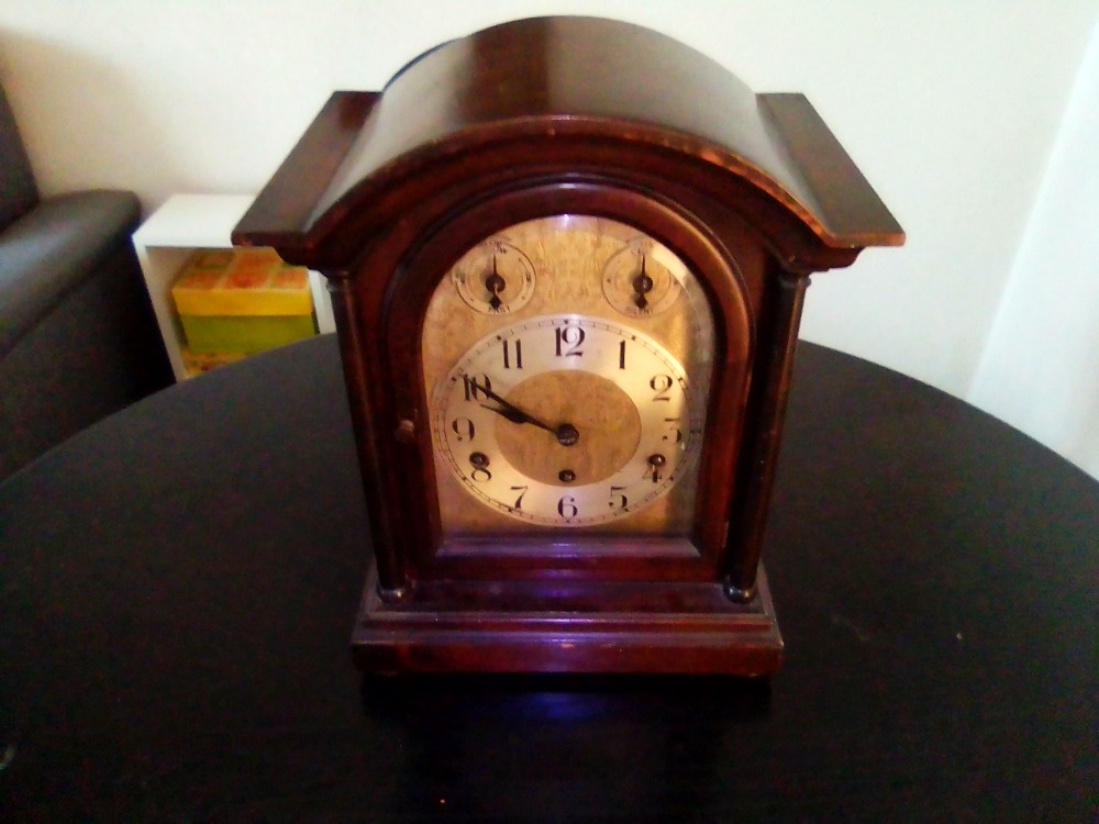 LUXUSNÍ STOLNÍ HODINY - ROČKY - [24.4. 2026]Stolní mechanické starožitné hodiny ročky. Hodiny se skleněným poklopem, musí stát na úplné rovině. Nálezový pěkný stav (viz foto).