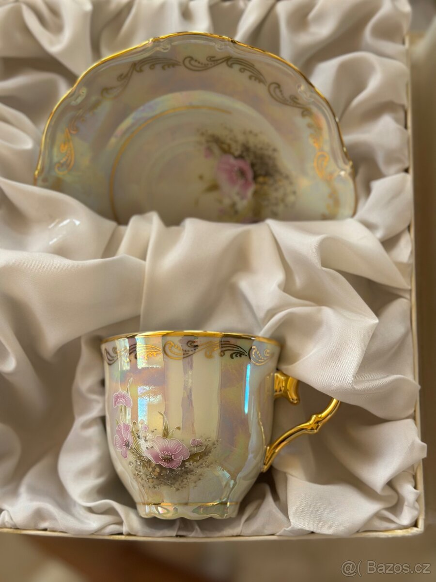 Nabízím porcelánovou přátelskou sadu 2 šálků. Perleťové šálky, top stav, pouze vystavené, mohu zaslat. Nevolejte, pište přes nabídkový formulář.