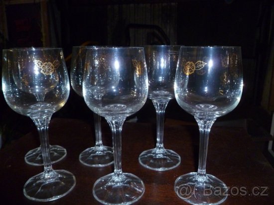 Retro skleničky na stopce se zlatým dekorem – 6 ks - [27.4. 2026]Prodám sadu 6 ks skleniček na stopce se zlatým dekorem. Jednotný design, pěkný retro vzhled.