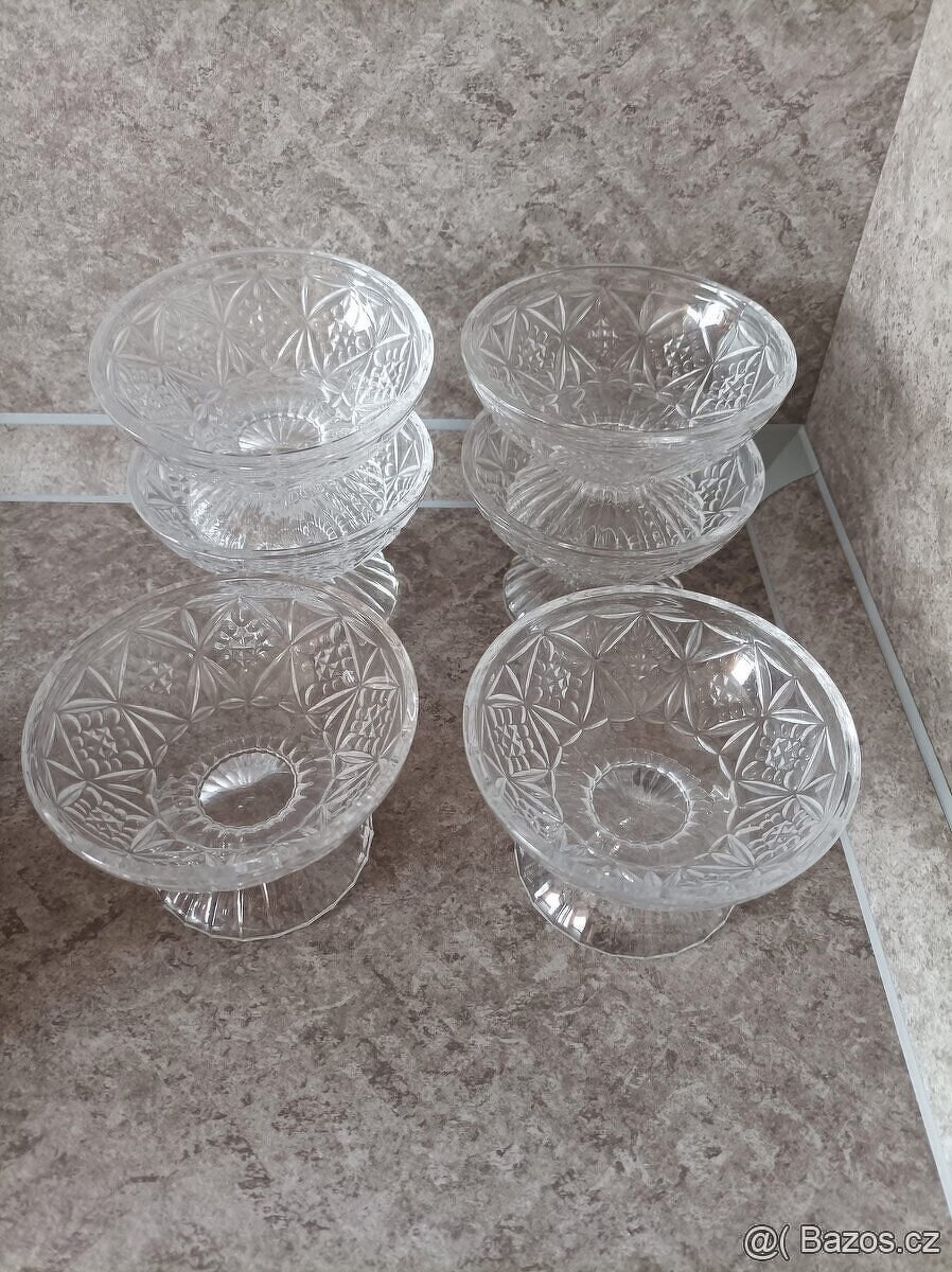Sada 6kusů skleněných misek na zmrzlinu nebo kompot. Výška je 6,5cm průměr 10cm.