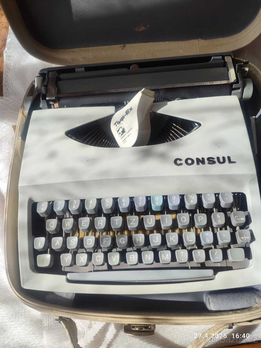 psací stroj Consul - [28.4. 2026]Prodám funkční psací stroj Consul a to včetně kufříku.