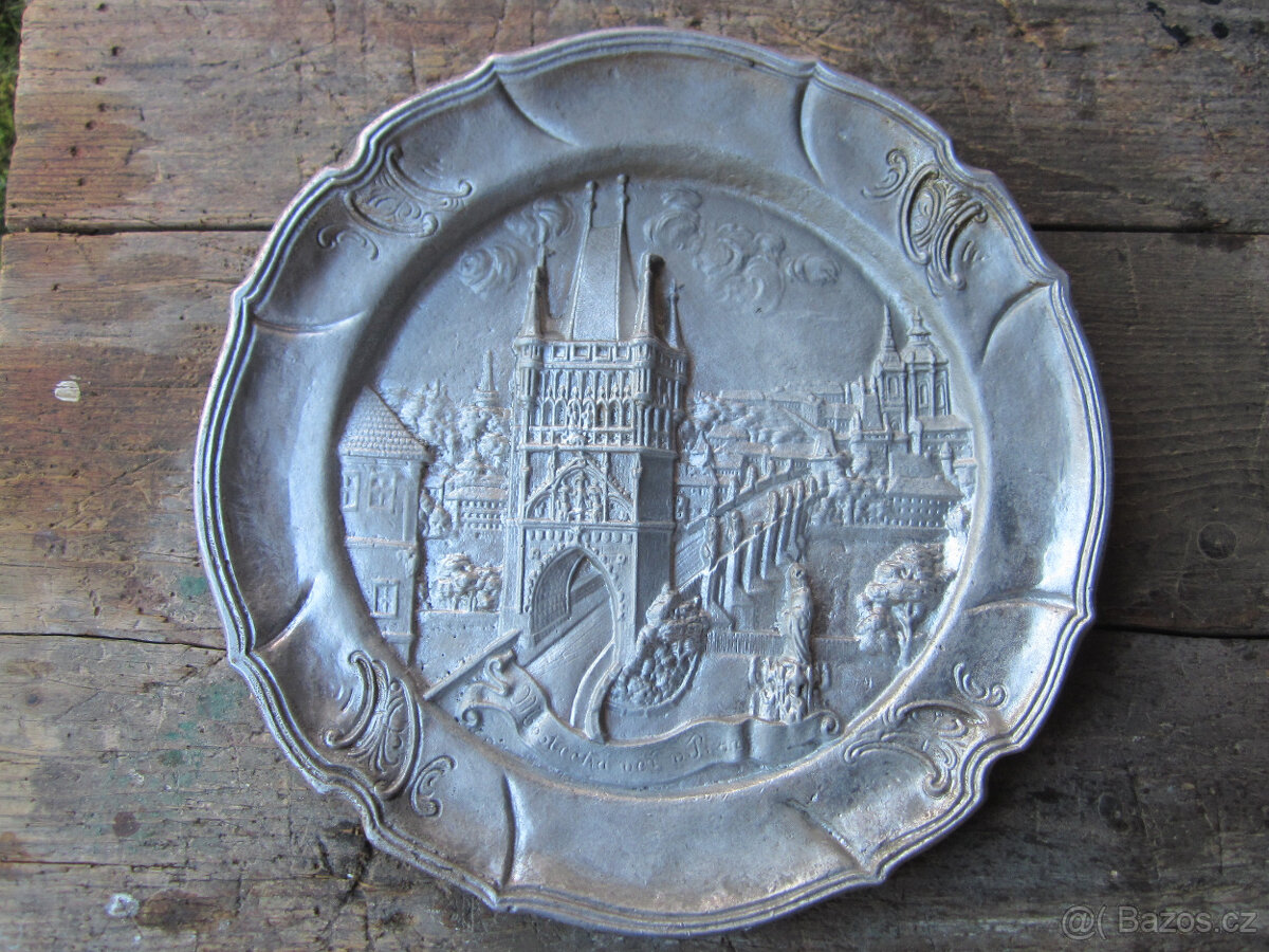 Nabízím kovový talíř s pražským motivem na pověšení.