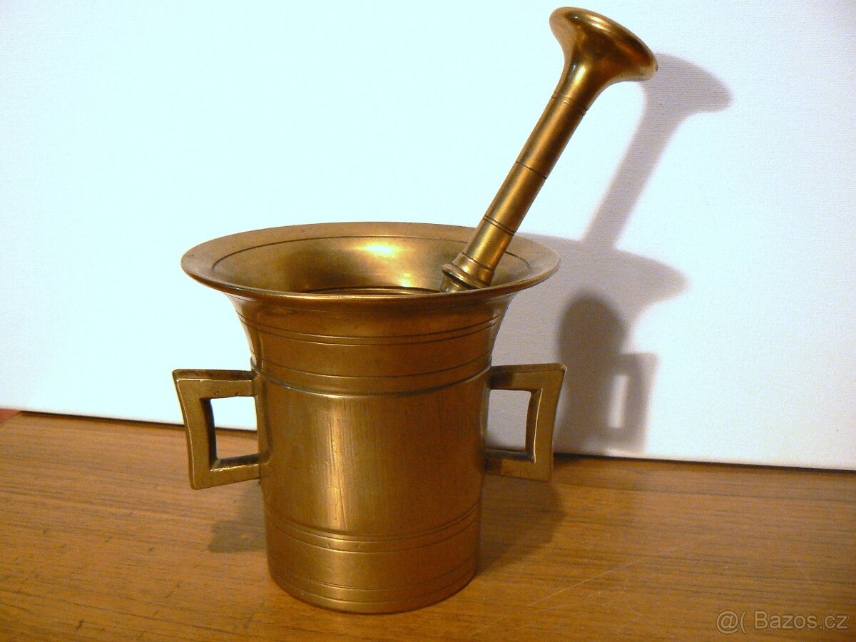 starý, velký- mosazný hmoždíř-v původním- velice pěkném stavu č.5-výška 11 cm- průměr hrdla 12 cm-TOP STAV