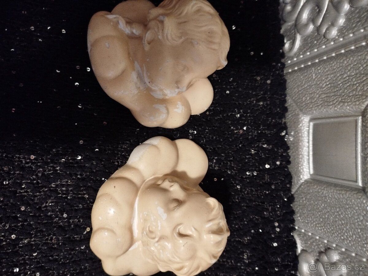 Krásni staří andělé,nutno vyčistit .Velké 15 cm .V dobrém stavu ,viz foto .Ze sádry.