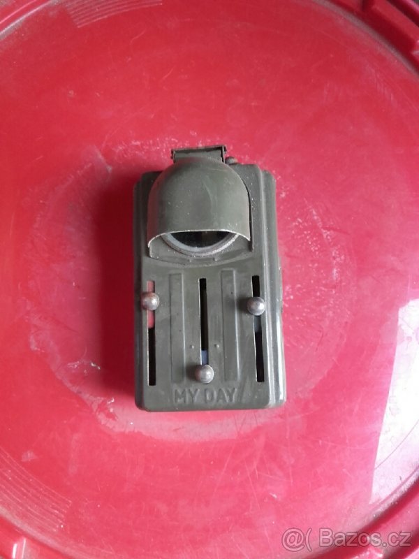 Vojenská tříbarevná svítilna "MY DAY", zelená - [15.4. 2026]Nabízím tříbarevnou signální baterku, která byla používaná u ČSLA. Pomocí výsuvných kolíčků lze též nastavit červenou, modrou nebo zelenou barvu světla. Baterku lze připevnit za opasek nebo knoflík.