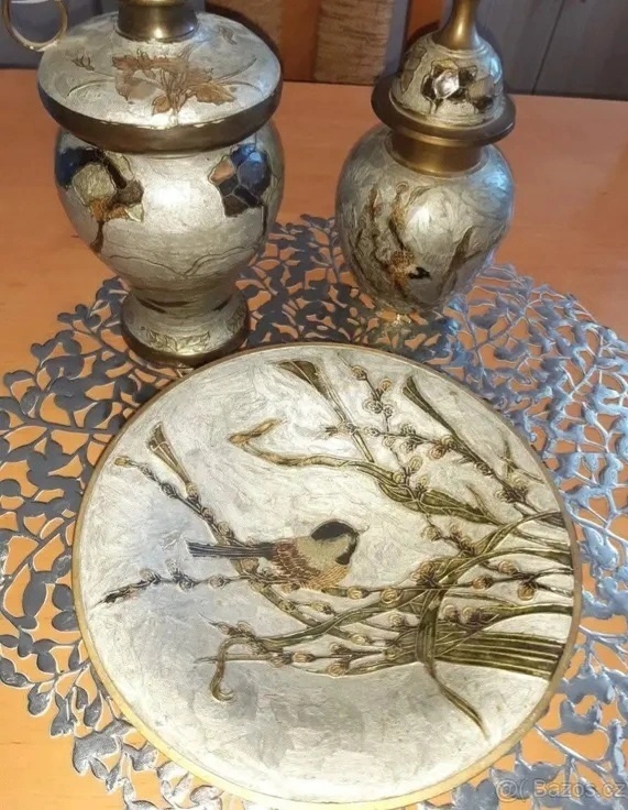 Nabízím z pozůstalosti pěknou zdobenou mosaznou soupravu.