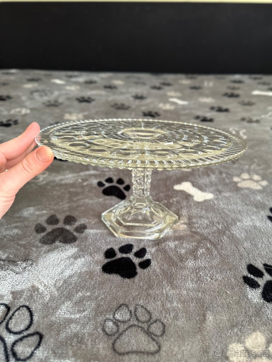 skleněný tác na dort