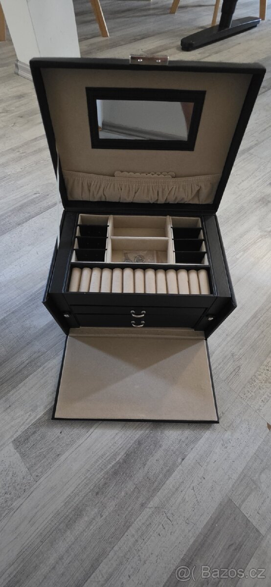 Krabice na šperky, luxusní, kůže, 2 patra, zrcadlo.